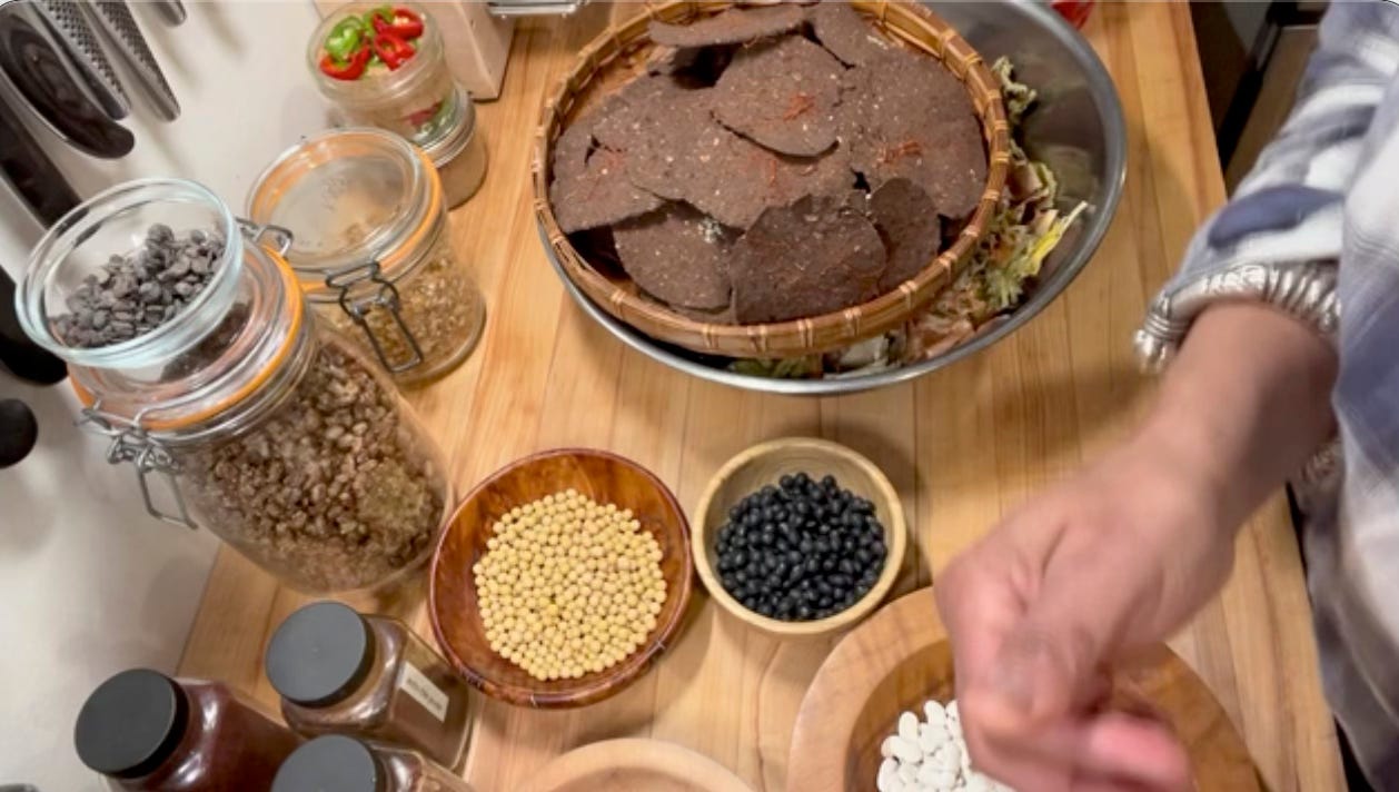 We can leverage that bounty and turn those black soybeans into something like this. These are wonderful funky soybean discs that I have seasoned. They are essentially bouillon cubes. For me that means an easy and delicious meal on the table.