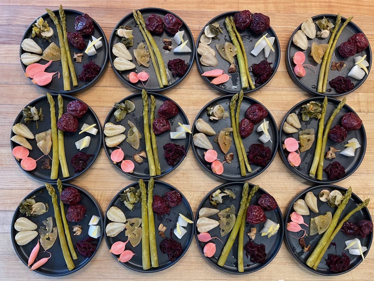 “Hi everybody. So I am going to talk about using dehydration and reducing water activity for fermentation, sort of going the opposite way of sink everything in brine and all will be fine, which is true. You want to keep things anaerobic. However, throughout history, people have figured out for various reasons that using dehydration and removing some of that water has some wonderful benefits. I am gonna talk to you a bit and then I will show you things.”